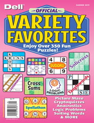 Dell Official Favorite Variety Puzzles offers the variety puzzles you love - Jumo-sized! Get the puzzles you know and love - Cross Sums, word searches, mazes, Quotation Puzzles, Solicross, Spellathon, Sudoku, Word Mines, cryptograms, Bowl-a-Score Challengers, Crosscodes, and more! From quick and easy to advanced challenges, you get it all. Truly something for everyone in this variety-puzzle bonanza! OVER 350 puzzles in all! Full size, 176 pages.